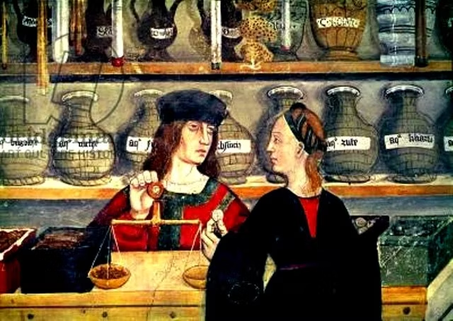 В XIII-XIV веках в Баварии, как и в других частях Европы, начали появляться городские аптеки. В городах, таких как Мюнхен, Нюрнберг и Аугсбург, аптеки стали коммерческими заведениями, регулируемыми властями. В 1241 году император Фридрих II издал «Эдикт из Салерно», разграничивавший функции врача и аптекаря, запретив врачам владеть аптеками. Это способствовало профессиональному развитию аптечного дела. Аптечная монополия, введенная в это время, позволяла открывать только одну аптеку в город, а аптекари получали льготы: освобождение от налогов, военной службы и даже право использовать государственный герб на вывесках.